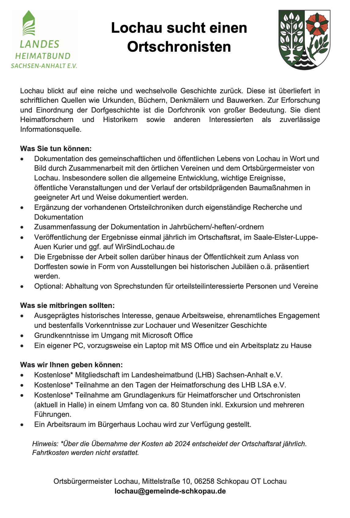 Die Seite WirSindLochau.de ist kein offizieller Internetauftritt der Gemeinde Schkopau. Wir verfolgen keine finanziellen Interessen, sondern wollen lediglich allen Interessierten unseren Ort näher bringen. Sollten Sie urheberrechtliche Einwände hinsichtlich unserer Texte und Bilder haben, teilen Sie uns dies bitte umgehend mit.
