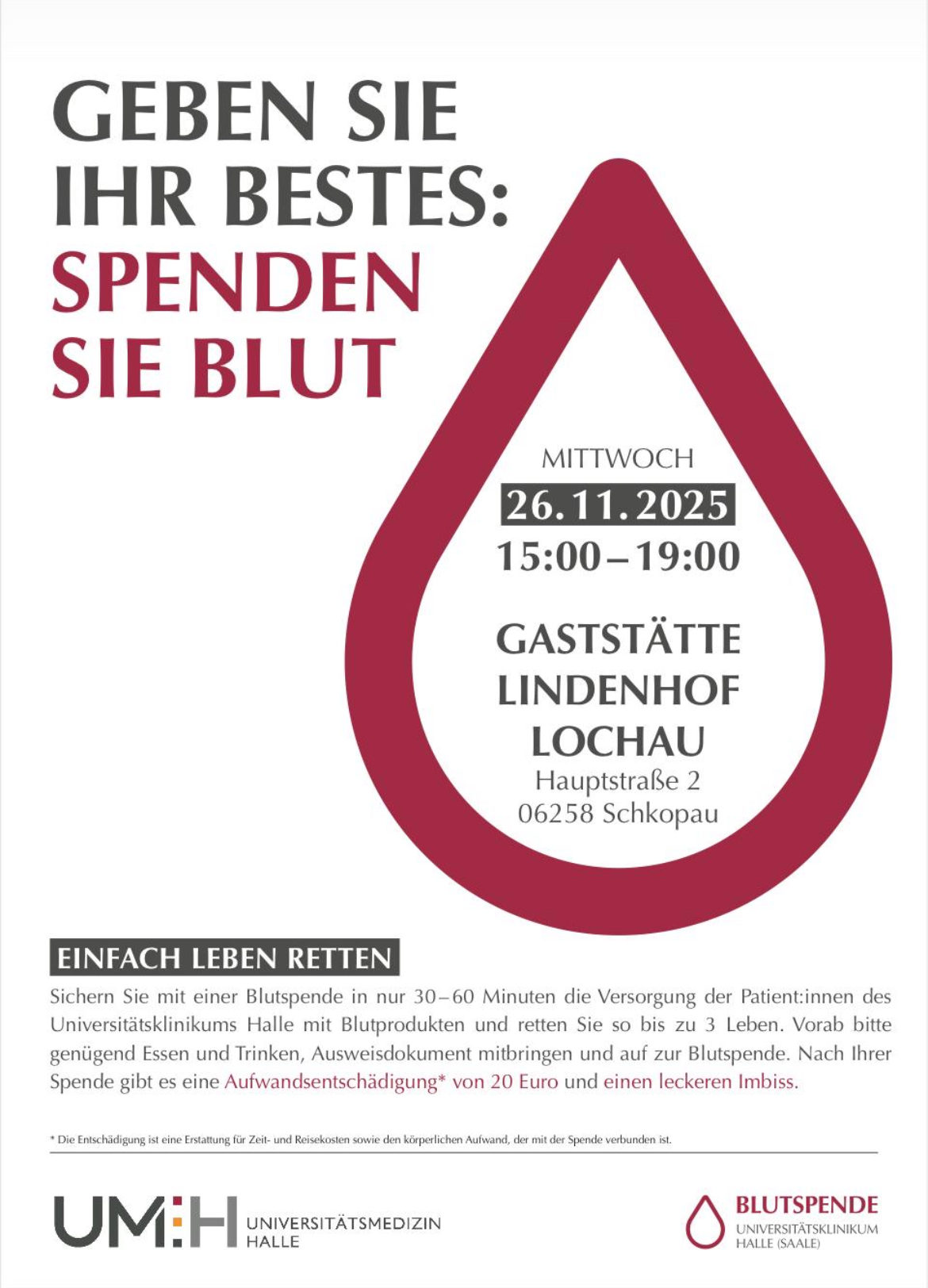 26.11.2025 von 15-19:00 Uhr: Blutspende im Lindenhof